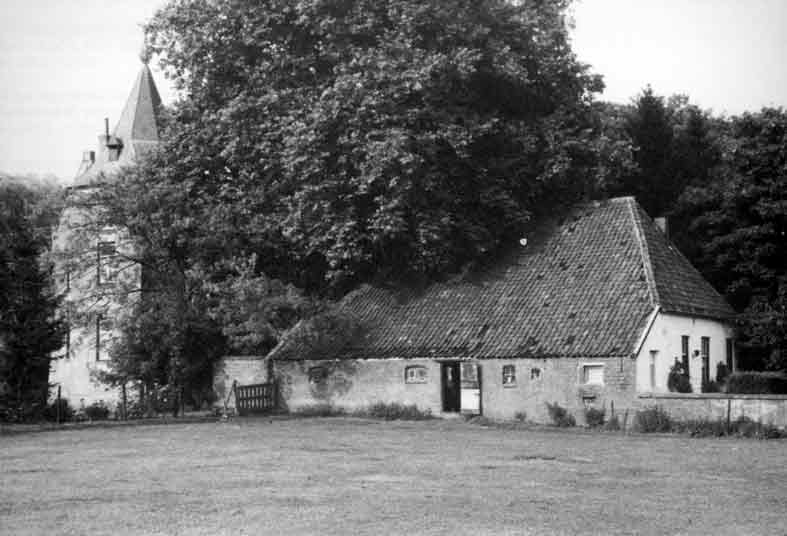 Links op de foto is de hoektoren zichtbaar van Huize Bemmel (oorsprong 14e eeuw), waartoe het prachtig bewaard gebleven koetshuis behoort. Het grote wolfseind aan de voorzijde van het dak wijst op een eerbiedwaardige ouderdom: het huis dateert uit de 18e eeuw. Het diende als stalling voor de koetsen en als woonhuis.