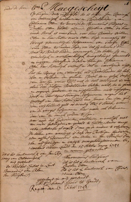 fol 1 : Maegescheijt Jan Rieringh van Oosterwijk