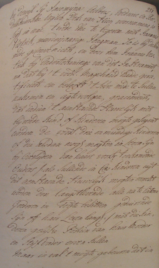 fol. 281: vervolg Magescheijd mede inhoudende Huwelijkse voorwaarden